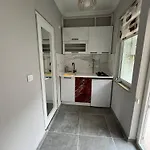 Denna lägenhet har utsikt över trädgården och erbjuder ett komplett kök med mikrovågsugn, kylskåp och spis.